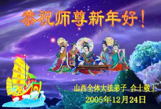 湖南省耒阳大法弟子 2005年12月24日 大庆市大法弟子敬祝伟大慈悲的师尊新年好