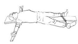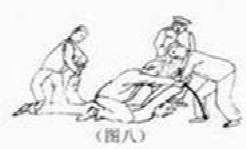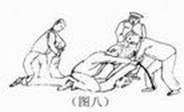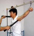 上大挂:一种是恶警将法轮功学员两手反铐背后,然后用手铐子吊到高处、铁网窗棂上。不久,铁铐子就往肉里刹、深陷至骨头,残忍无比。一种是恶警用绳子将法轮功学员双手、一条腿绑住,吊起来,全身的重量只能压在另一条腿的脚尖上。有的法轮功学员被吊铐毒打几十天,致残致伤。