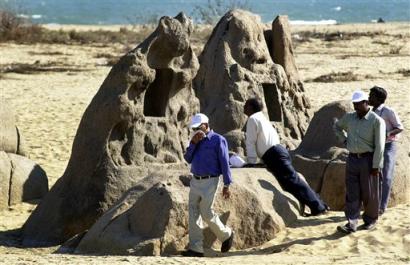 【明慧网2005年2月21日】印度东南部的泰米尔纳德邦去年底受到南亚大海啸袭击,造成重大人员伤亡和财产损失。不过,该邦马哈伯利普勒姆镇却在海啸发生后,一组神奇的古代石雕建筑群生突然“冒”了出来,成了考古界的一份意外获得。 据北京青年报报导,2005年2月11日,印度考古学家对在海啸中遭袭的马哈伯利普勒姆印度教神庙进行考察,考古学家无意中在考察地附近发现了一片“陌生”的、排列有序的巨石,上面刻有狮子、马和寺庙等图案。 从巨石的排列次序和上面的图案来看,这些巨石是马哈伯利普勒姆印度教神庙的部分外围墙和内墙。当地考古学家认为,这组古代石雕建筑属于当地一座著名的印度教神庙未被发掘的部分遗迹。 历史又在重复!过去世的山崩海啸过后,地壳发生变化,有些海洋升上来成为陆地,有些陆地沉下去成为海底世界的一部份。要再等无数无数年之后,地球再发生大灾难时,地壳又发生变化,陆地海洋又要翻个个儿。此次海啸后,印度海域浮出疑似古圣城遗址。 据美联社2月18日报导,去年十二月底南亚大海啸过后,位于印度马德拉斯以南三十里处的马哈巴利普兰被这场世纪海啸吞没。海啸退去后,却意外的发现一座可能建于七世纪的水下古城遗址。据考古学家初步估计,马哈巴利普兰海底可能有一座古代圣城。印度考古学家和海军潜水员目前正开始在水下发掘这座古城,预期将揭开更多历史谜团。  马哈巴利普兰早就因古老、雕刻精致的海岸庙宇闻名于世,其海边寺庙被列为世界文化遗产,每年有数以千计的印度朝圣者及旅客前来朝圣及游玩。海啸退去后,冲走海底堆积的泥沙,三个两米高刻有精美动物画像的岩石雕塑露出水面。其中一个浮雕上刻有大象的头,和一匹飞马,大象头上有个四方形小壁龛,壁龛里有一座雕刻的神像。另一个浮雕上雕有一头躺着的狮子。 据印度考古学家萨特亚穆斯介绍,这些浮雕建筑可能是建于西元7世纪的一座海滨古城的一部份。 据早期英国旅游作家记载,马哈巴利普兰地区曾有七座宝塔,其中六座沉入海底。据考古学家介绍,狮子和大象都是七、八世纪时常见的墙壁装饰图案。因此这些浮雕建筑很可能是传说中七座宝塔的一部分。 过去人们把“传说”当成故事,现在发现原来“传说”都是存在过的真实。 据报导,印度政府的考古协会和海军潜水员已开始对马哈巴利普兰地区展开水下发掘工作,预期发掘工作将会揭开更多谜团。 萨特亚穆斯在马德拉斯接受美联社记者电话采访时表示,海啸过后,一个浅浮雕露出水面,似乎是一座寺庙外墙的一部分,或者是一座海滨古城的一部分。随着潮水撤退和海岸线改变,预期还会有更多东西露出水面。 当更多的证据展现在眼前时,科学家们会发现,自己过去穷其一生对人类历史研究的成果竟然是愚昧可笑的。 |