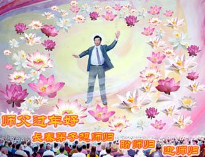 两首小诗表达我们的情怀: 赠师 佛恩浩荡 慈悲苦度 为救众生 吃尽万苦 佛光普照 洒满甘露 大法洪传 全球遍布 弟子行 大法弟子 随师正法 紧跟進程 加快步伐 正念正行 精進不停 排除干扰 救度众生 辽宁朝阳市大法弟子向师父问好