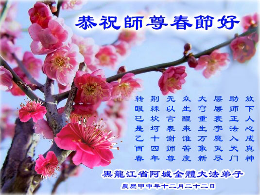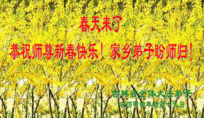 河南省洛阳市全体大法弟子、济源市全体大法弟子、漯河市临颍县全体大法弟子向至尊至圣的师尊拜年!他们很想念师父,无法用人类的语言表达弟子对师父的心情。 长春大法弟子恭祝师尊过年好!