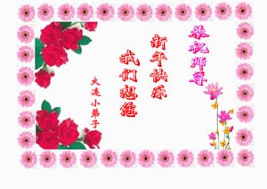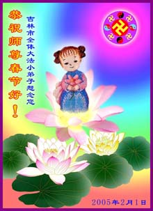 每逢佳节倍思亲,我们非常想念师父。不管我们身在何处,我们都会做好师父交给的三件事。 在这里我们再一次遥祝师尊新年快乐!并向全世界大法弟子问新年好! 2005.1.30 吉林市被非法关押的大法弟子恭祝师尊新年好!