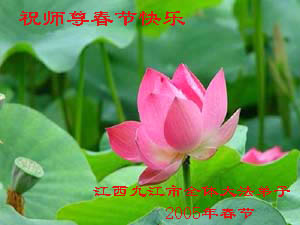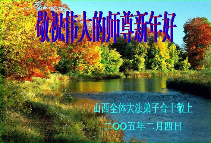 请师父放心,我们全体大法弟子一定要正念正行,跟上正法進程,做好师父教导的“三件事”。 同时也向海内外全体大法弟子问候新年好! 吉林省榆树市全体大法弟子 2005年1月30日 山西太原大法弟子恭祝慈悲伟大的师尊过年好!