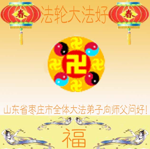 新春佳节来临之际大陆大法弟子倍加想念恩师。在新的一年里,我们会继续紧跟师父正法進程,進一步讲清真象、反迫害,彻底清除邪恶,救度世人。真正做好大法弟子应该做好的“三件事”。请师尊放心。  山东省枣庄市全体大法弟子 2005年1月31日 在上海提篮桥监狱被非法关押的全体大法弟子恭祝伟大的师尊新年快乐!
