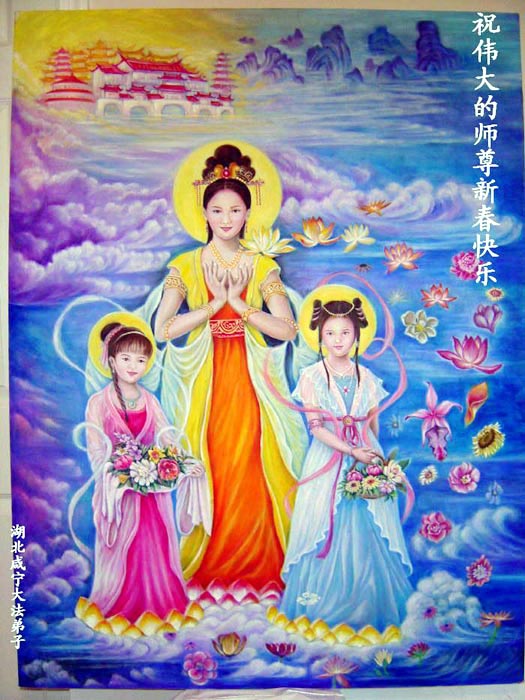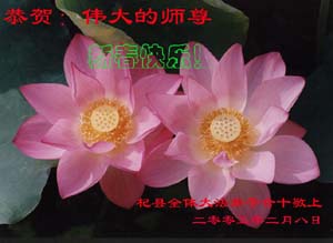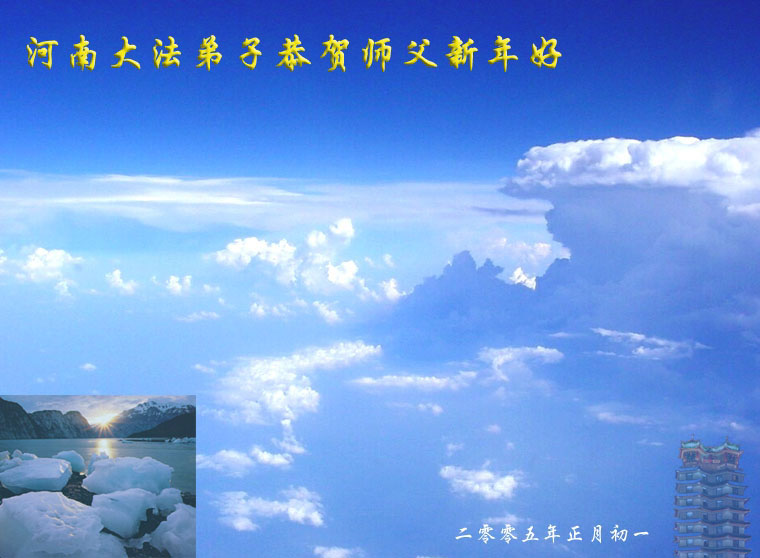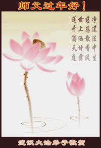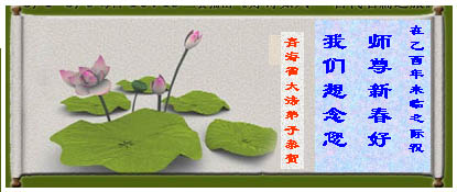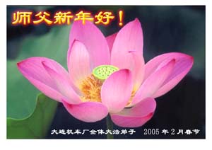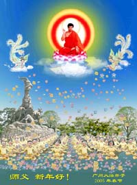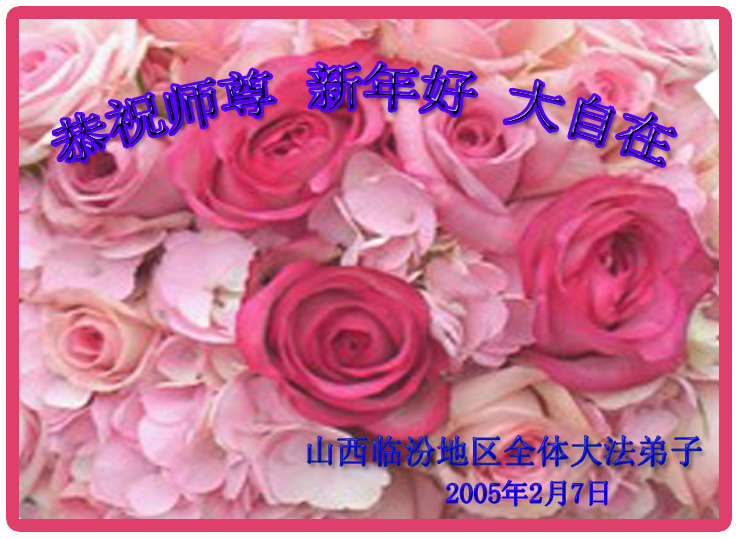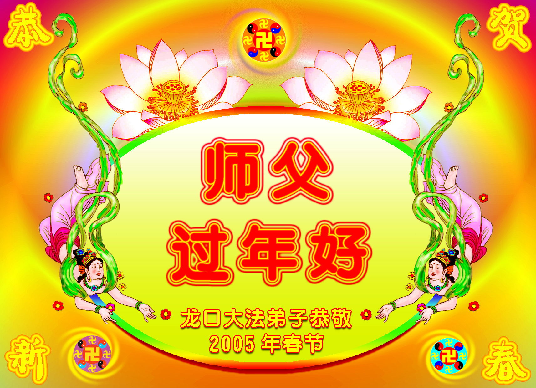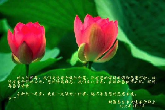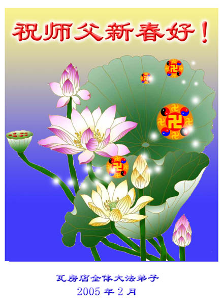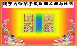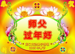 师尊辛苦了,弟子们给您拜年。并请师尊放心,无论前面还有多少艰难险苦,弟子们定能遵从师尊的教诲,完成自己的史前大愿,决不辜负师尊的一片苦度之心。  2005年2月7日 湖北咸宁大法弟子给师父拜年