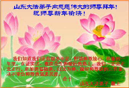 弟子一定加倍努力,做好师父要求的三件事,走好师父安排的路。  山东省蒙阴县大法弟子向师父拜年