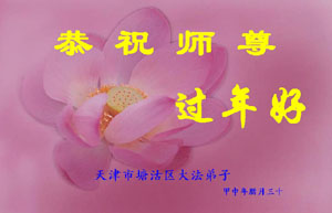 请师尊放心,在新的一年里,弟子一定谨记师尊的教诲,踏踏实实做好大法弟子应该做好的讲清真象救众生、发正念清除邪恶、个人修炼三件事。大家共同配合好,整体提高,推动整体形势的好转是我们义不容辞的责任。 天津市大港区全体大法弟子恭祝师尊新年好