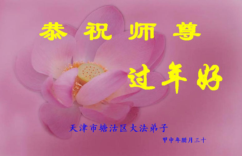转眼人间又是一年,我们身边的环境已在悄然改变!实践已经证明:邪恶迫害的猖獗、残忍、狡猾,在大法弟子的正念和成熟面前已显得日益脆弱!曾经跌倒的弟子都已爬起来往前冲了! 新宇新春新气象,我们恭祝师尊新年好!感谢师尊的慈悲救度! 广州市全体大法弟子 甲申年腊月三十 天津大法弟子向伟大的师尊拜年
