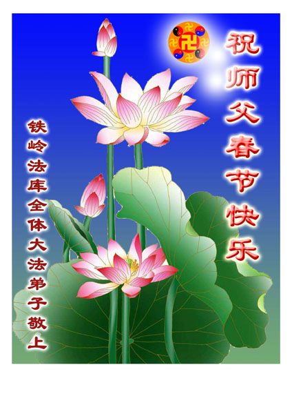 值此新春佳节之际,我们辽宁边远山区的大法弟子给师父拜年,祝师父节日快乐!发自肺腑的道一声:师父您辛苦了!您对弟子的浩荡佛恩及慈悲苦度,弟子们时刻铭记在心,并以实际行动来回报您!抓紧时间,救度世人,紧随师父,坚修到底! 合十 辽宁边远山区大法弟子 全体辽宁省铁岭市全体大法弟子向伟大的师尊拜年