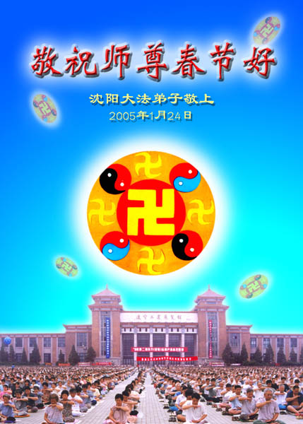 向全世界大法弟子问候新年好! 不管前方的路有多少艰难险阻,我们全体大陆大法弟子一定不负历史使命,一定做好大法弟子应该做的三件事。感谢师恩,慈悲众生。 沈阳全体大法弟子给师父拜年!