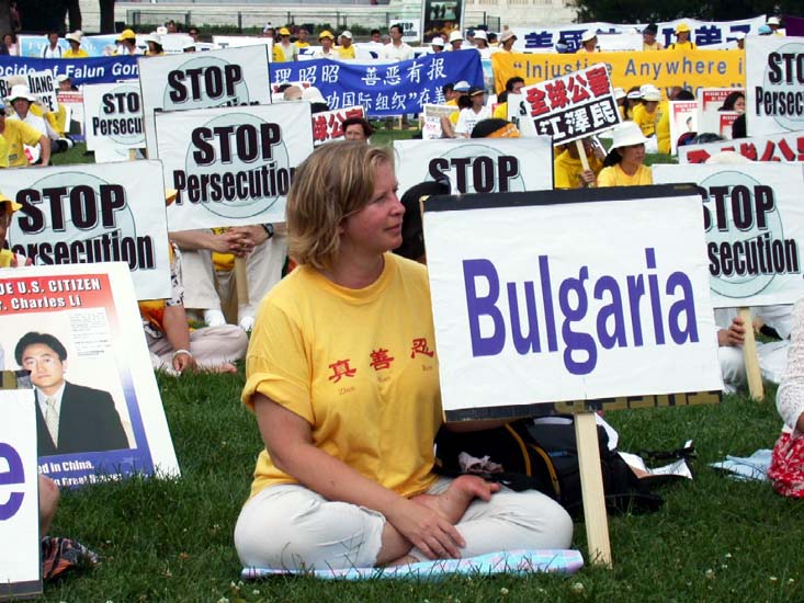 | 【明慧网2005年3月14日】这是一张新闻照片,作者没有给标题。那么我们在普遍意义上、在知情的情况下猜想它是一幅大法学员在集会抗议的场面照片。经历过这类活动的人都知道这张照片里的内容意义。 初看还不错,内容丰富、画面充实、清晰、近大远小给人以纵深感,从里面的内容我们能找到许多有关中国政府迫害法轮功的内容。也能看出这些人群是在静坐抗议,内涵是积极正面的。 那么,这幅照片我们用摄影的最基本要素来分析一下,就能看出它有一个摄影技术上的容易被人误解的主题问题。(仅就此张作品分析) 1.作品主题要鲜明 2.作品构图要突出主体 主题是作者标出的这幅作品的中心思想,一幅作品就只能有一个主题。 主体是你的作品中心,你要表现的人或物。 如果一幅图片你不用加以说明就能看懂它的内涵,这幅照片就叫是好的了。 我们来看这张照片: 最先进入我们眼帘的是一个身穿大法服装的西方人手持着一个国家名称的牌子?那么首先给人的联想是内容与这个国家有关系。因为这个人物和牌子所占的位置、面积很重要,色彩也很鲜明,自然的他们就形成了这幅作品的中心、主体。 如果一个不知情的人看这幅照片他会联想法轮功在这个国家发生了什么? 那么我们盯住这个主体,用余光再看画面:非常抢眼的是左下角的人像和上部标语上写的字“停止迫害”“停止迫害”。他们比重也是很大的。 这幅照片构图在突出主体上还可以,但人物表情有些含糊,内容不是很集中。多少在视觉上给人有多主体、多内容的感觉。 所以这幅照片在主题内容的表现上不是很鲜明。如果这位女学员表情很鲜明、手里持的标语牌写的是与制止迫害有关的内容,那么这幅作品就大不一样了,作品的主题也就鲜明突出了,那就是一幅非常好的摄影作品了。