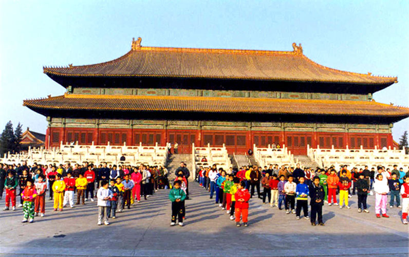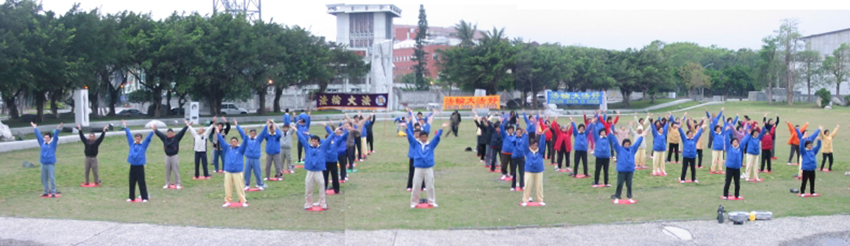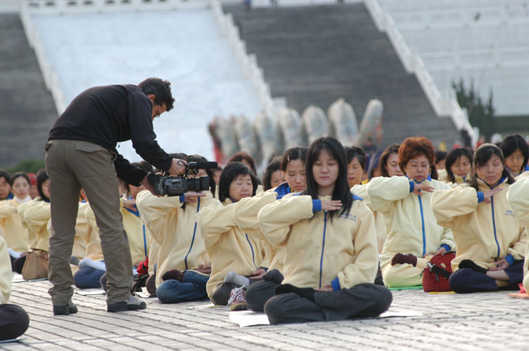 江氏集团自1999年7月20日迫害以来,利用国家媒体机器美化其罪恶,丑化法轮功修炼者,掩盖真实的迫害,不断制造类似自焚伪案等事件,煽动人民对法轮功的仇恨。但正义良知长存人们心中,一位华尔街日报记者伊安·约翰逊在2000年4月20日中国潍坊消息中称:“在陈子秀去世的前一天,逮捕她的人又一次要求她放弃她对法轮大法的信仰。在又一轮警棍打击后几乎失去了清醒意识的情况下,这个58岁的老人还是坚定的摇了摇头。暴怒的地方官让陈女士赤脚在雪地里跑。据其他目击这一事件的监狱中的人说,两天的折磨使她的腿严重淤伤,她的短短的黑发上粘着脓和血。她在外面爬,呕吐并因虚脱而昏倒。她再也没有恢复知觉,并于2月21日去世。 ” 在台湾,学炼法轮功,自由、快乐、幸福,意大利记者特别远道来制作记实片;在中国大陆,学炼法轮功,却要遭到非法迫害、关押,甚至迫害致死。花莲法轮功学员表示:法轮大法是一种佛家上乘修炼功法,让人身心受益,希望更多的有缘之士一起加入修炼的行列,一起分享修炼的喜悦,并呼吁对岸的中共江氏集团早日停止对法轮功的非法镇压。 2005年3月19日清晨,近700名法轮功学员在中正纪念堂广场前晨炼2005年3月19日的清晨,台北的部分法轮功学员来到中正纪念堂广场,近700人的聚集,炼功音乐一响起,自动的排好队形,整齐划一的炼起功,竟是鸦雀无声。Flaminia非常惊讶,直说你们协调得相当好。她说看到学员们的炼功时,很想安安静静的仔细的来观看动作,但碍于工作无法实现。 Flaminia说,她知道法轮功是一种运动的、柔和的功法,秉持着“真、善、忍”的宇宙法理,对身心皆受益,更有助于社会的安定。在纽约的街头她看到的是揭露法轮功遭受迫害的故事,在台湾看到法轮功洪传此美丽之岛,与人民修炼后的善良与平和,法轮功的被迫害不是本质的故事,法轮功的美好才是真正的故事。就因为法轮大法如此的美好,更要寻求世界善良的人民的协助来共同停止这场迫害。   1999年7月迫害前北京法轮功学员集体炼功的景像 |   2005年3月19日清晨,法轮功学员在中正纪念堂广场前晨炼景像 |