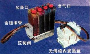 连续供墨系统特别适合打印量较大的用户使用,一瓶500毫升的黑色墨水售价为60元,相当于20~30个墨盒的容量,用户不必再为昂贵的打印耗材烦恼了。 小提示:使用自制的连续供墨系统以后,可以经常自动清洗打印喷头,从而使打印机处于最佳工作状态。 以上改装过程看似复杂,其实很容易操作,成功与否的关键在于墨盒的密封工作做得好不好。当黑色墨盒改装成功后,试用一下,若没有问题,就可以着手改装彩色墨盒了,原理相同,只注意理顺输墨胶管,使之不影响墨盒卡盖和喷头组件的运动就可以了。