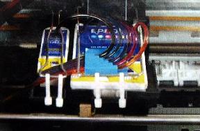 拆掉墨盒卡盖,改用铁夹固定墨盒的连续系统 |