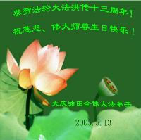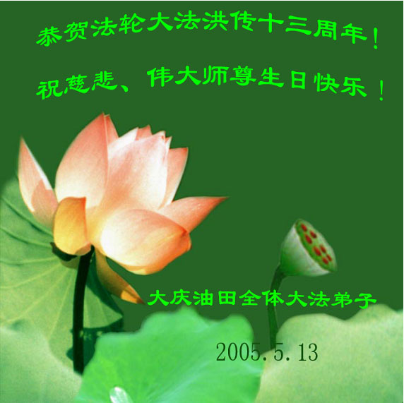 恭祝慈悲伟大的师尊生日快乐! 2005.5.13 大庆油田全体大法弟子恭贺法轮大法洪传十三周年!