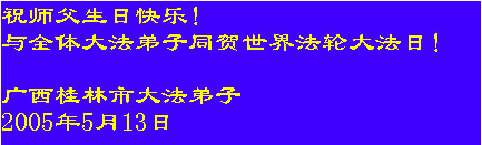 福建省龙岩市大法弟子贺 2005年5月13日 广西桂林市大法弟子祝师父生日快乐