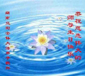 湖南荥阳全体大法弟子恭祝师父生日快乐!