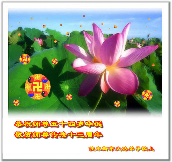黑龙江佳木斯全体大法弟子恭贺伟大师尊五十四华诞暨传法十三周年