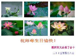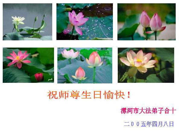 漯河市大法弟子合十 二00五年四月八日 武汉新洲大法弟子祝师尊生日愉快!