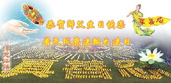 恭祝师尊生日快乐 恭祝世界法轮大法日 广州白云区、东莞东城区弟子祝师父生日快乐!