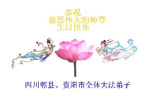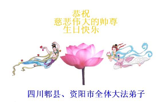 四川郫县、资阳市全体大法弟子 向师父合十,我们一定做好弟子应该做的事 大陆大法弟子恭祝伟大的师尊五十四华诞!