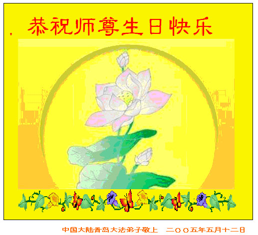 四川省全体大法弟子敬上 2005年5月12日 天津开发区大法弟子祝师父生日快乐!