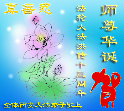 陕西西安地区法轮大法弟子恭贺法轮大法洪传十三周年! 师尊您好! 值此大法洪传十三周年之际,我们陕西省西安市的全体大法弟子向师尊道一声好!人世间的千言万语也表达不出我们此刻的心境,您为苍穹正法操劳,为我们操劳。弟子们没有理由不勇猛精進。 我们一定做好师尊要求的三件事,救度世人及众生,迎接法正人间的伟大时刻,大陆弟子想念师尊! 陕西省西安市全体大法弟子敬上 二零零五年五月十三日 黑龙江省全体大法弟子祝慈悲伟大的师尊生日好!