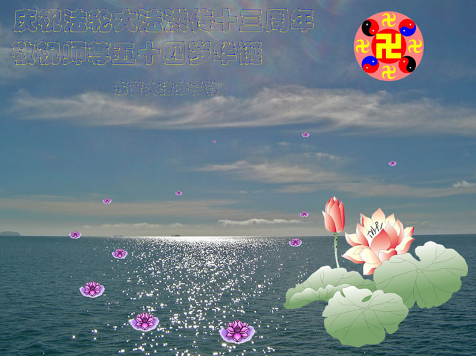 恭祝师尊生日快乐! 庆贺法轮大法洪传13周年!  福建宁德市二区(蕉城、东侨)八县(福安、福鼎、霞蒲、古田、屏南、周宁、柘荣、寿宁)全体大法弟子敬贺 东营大法弟子恭贺师尊五十四岁华诞、庆祝法轮大法洪传十三周年