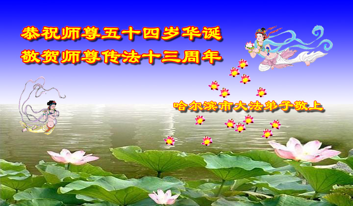 黑龙江哈尔滨全体大法弟子恭贺伟大师尊五十四华诞暨传法十三周年