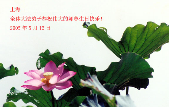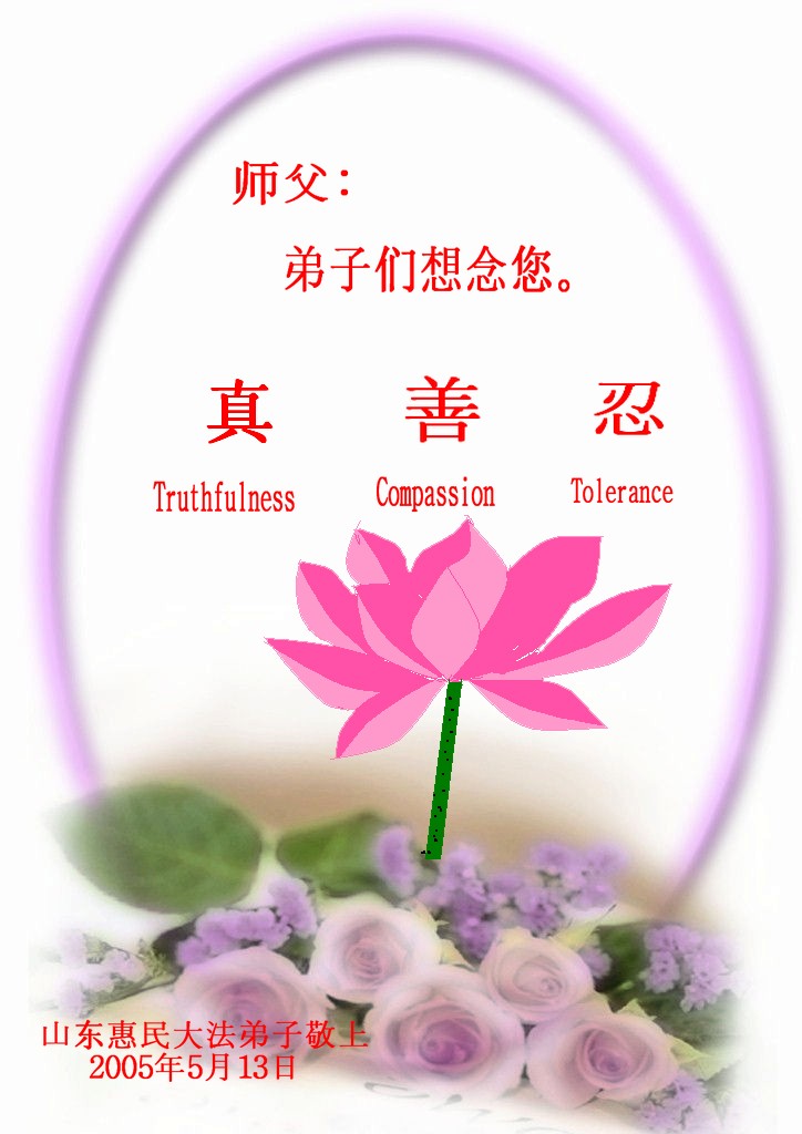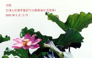 尊敬的师尊,弟子想念您!师尊您辛苦了! 山东省即墨市大法弟子 二〇〇五年五月十三日 来自上海的大法弟子祝师尊生日快乐!