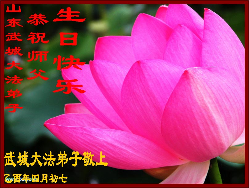 喜逢师尊华诞,又是世界法轮大法日,我们四川大法弟子向师尊表达最诚挚的祝贺,恭祝师父生日快乐! 并向全世界大法弟子合十问候! 山东滨州大法弟子祝师尊生日快乐