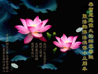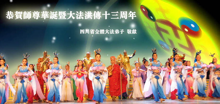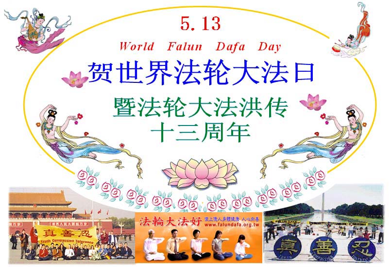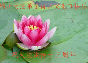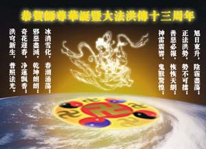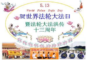 大陆大法弟子恭祝师尊生日快乐!热烈祝贺大法洪传十三周年暨世界法轮大法日!