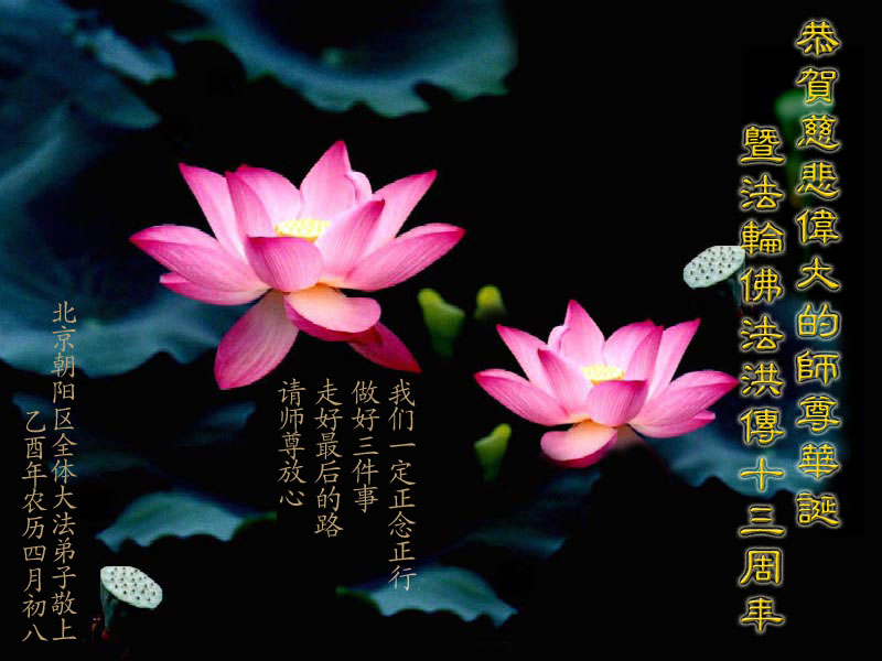 北京朝阳区大法弟子恭贺师尊华诞暨法轮大法洪传十三周年!