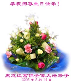 祝贺法轮大法传世十三周年! 2005年5月15日 牡丹江大法弟子恭祝师尊生日快乐