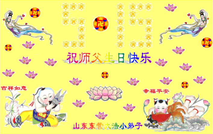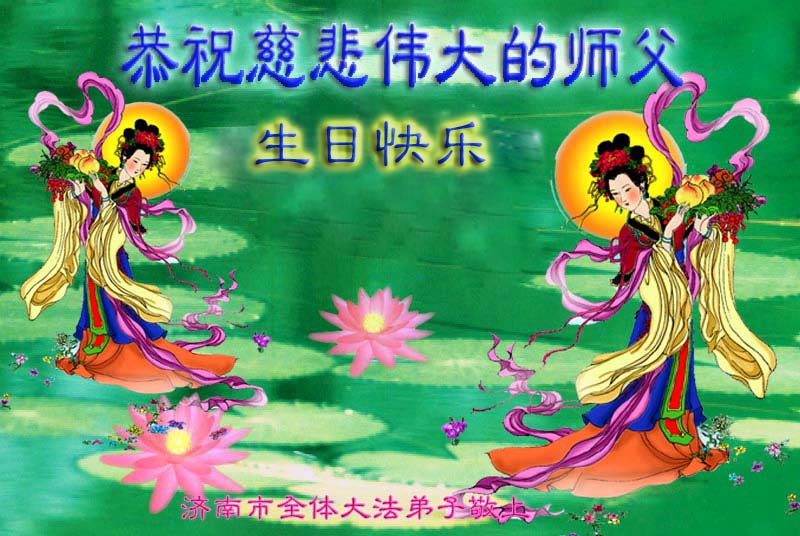 在这天地同庆的时刻,难以用人类的语言表达对师尊的敬意!决不辜负师尊的慈悲苦度,一定按照师尊的要求做好正法时期大法弟子应该做好的一切,正念正行,修正自己,同时抓紧讲真象,救度世人,走好最后的路。 山东济南大法弟子全家祝师父生日快乐