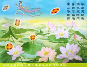 净莲恩师栽 法光天际来 春归冰霜焕 万朵净莲开 黑龙江省安达市全体大法弟子恭祝师尊生日快乐!