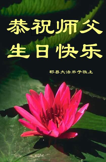 今天是师父的生日,我们全体蔚县大法弟子向师尊问好!敬祝师尊生日快乐!请师父放心,我们将更好的按照师尊的要求做好“三件事”完成大法弟子的使命,走好最后的路。 全体蔚县大法弟子 江西新余大法弟子恭祝伟大慈悲的师父生日快乐!