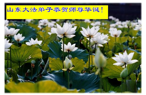 青岛全体大法弟子恭祝慈悲伟大的师尊生日快乐!恭贺法轮大法洪传十三周年。