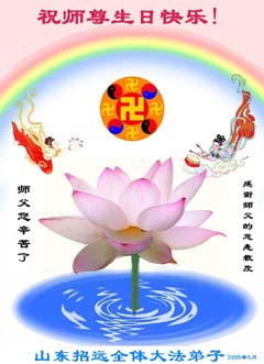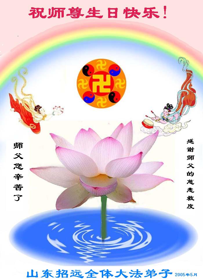 北京朝阳区大法弟子 2005年5月14日 山东省日照市全体大法弟子恭祝师尊生日快乐!