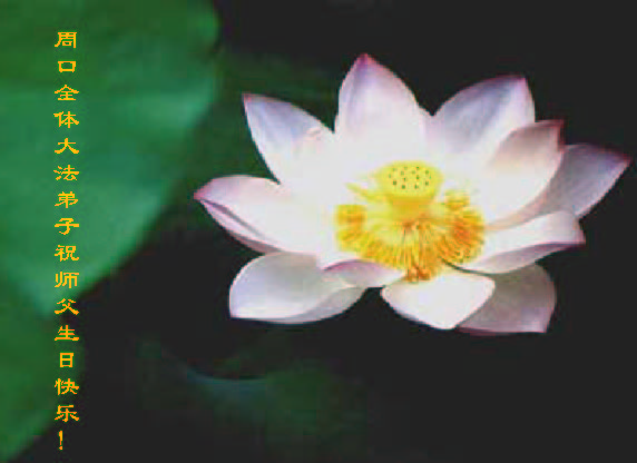 我们周口全体大法弟子一定会勇猛精進,做好三件事,不辜负师父的慈悲苦度! 值此伟大师尊生日之际,祝师父您生日快乐! 祝全世界大法弟子节日快乐! 郑州大法弟子祝师父生日快乐!