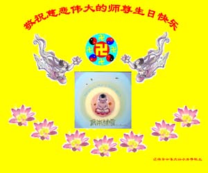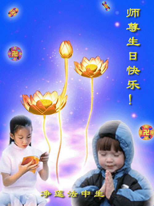 请师父放心,弟子一定按您的要求做好三件大事,放下常人的一切心,一切执著,正念正行,走好证实法的路。 石家庄市流离失所弟子 广东湛江全体大法弟子恭祝伟大的师尊生日快乐!庆祝世界法轮大法日!