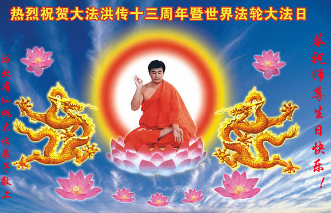 河北省三河燕郊大法弟子 湖南省隆回全体大法弟子恭祝师尊生日快乐!热烈祝贺师尊洪传大法十三周年!