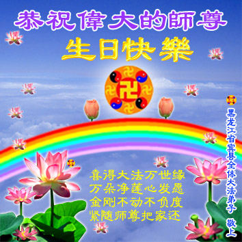 黑龙江宾县全体大法弟子敬祝师父五十四岁生日吉祥、快乐!