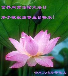 伟大的师尊: 今天是您的诞辰。我是您走过弯路的弟子,是您的洪大的慈悲使我清醒,从新回来,在此弟子向您表示深深的谢意。也代河南南阳大法弟子向师尊致以最崇高的敬意,并祝师尊生日快乐 云南大理全体弟子恭祝师尊五十四华诞并祝贺世界法轮大法日!