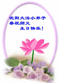 与全世界大法弟子同贺世界法轮大法日! 师父:您辛苦了,感谢师父对无量众生的慈悲苦度,弟子想念您,盼望能早日见到您! 2005年5月12日 沈阳大法小弟子恭祝师父生日快乐!