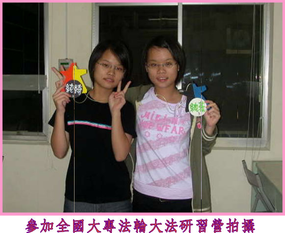 | 【明慧网2005年8月31日】 炼功身心受益 家族多人修炼 胡先生夫妻俩修炼法轮大法五年了。以前胡先生每日烟酒不断,一心要努力赚钱,因工作压力重而脾气暴躁;修炼后戒了烟酒,坏脾气改掉了,放下名利心而生活自在。胡太太患地中海型贫血症及蚕豆症,是医院常客,两膝盖软骨碎裂开过刀,膝盖经常肿胀而行走困难;修炼大法后顽疾重症逐一消失,步履轻健,喜获重生。 胡太太开始炼功的第三天就亲眼看到李老师的法身,此后天目经常看到另外空间美好殊胜的景象,比如:打坐时看到手上小莲花变成大莲花;看到黑乎乎的两只脚被晶莹剔透的钻石重组,第二天脚部疼痛便减轻许多;看到脚趾尖被红黄蓝三种鲜艳颜色的圆点锁住,身体就飘不起来了……诸多超常奇妙的神迹,印证了《转法轮》书中所述句句真实。 因为修炼后亲身受益,夫妻俩勤于洪法,现在胡先生的母亲、大姊、二姊、小妹、大嫂、二哥、二嫂陆续都走进修炼法轮大法的行列,一家和睦,众人钦羡。胡氏伉俪育有一子二女,双胞胎女儿恬静可爱,夫妻俩平常教导小孩敦品励学要做好人,一直希望小孩也能修炼大法。 九天班与大专研习营 今年七月一日附近国小举办法轮大法九天班研习营,主办人刘老师是双胞胎女孩的老师,因此请胡家三个小孩去当义工帮忙。每天播放李洪志老师的讲法录像带前,她们要从教室里把桌椅搬出来,摆上签名单、大法书籍与CD等相关资料供学员借阅,准备茶水、杯子。下课后再搬进教室锁好,还要清理垃圾、打扫环境等。 新学员听讲时,双胞胎姊妹就当小保姆,看顾学员的小孩,从二岁到十岁不等,陪这些幼儿看卡通、玩游戏、看漫画、下棋等。她俩很有耐性、平易近人,小朋友都很喜欢她们,研习班结束,小朋友索要她们的电话,说要来找她们玩。九天班结束,姊妹俩对大法已有亲切感了。 七月二十九日至三十一日,交通大学举办全台湾大专法轮功研习营,刘老师请胡太太问三个小孩是否想参加,结果姊妹俩欣然同意。夫妻俩暗自高兴,女儿们与大法的缘已接上了。研习营的活动生动有趣,规划节目丰富活泼,在学长学姊无私的照顾和关怀下,姊妹俩感受到大法的祥和美好。研习营结束后,这群大哥哥大姊姊经常传电子邮件鼓励她们,两姊妹开始读《转法轮》,每天晚上也炼功,她们高兴的说:我们得法了。 父母的好帮手 修炼带来福份 暑假期间姊妹俩帮忙写了上千封邮件、贴邮票,投入不少时间与精力,就为了让大陆上受江氏集团与中共谎言蒙蔽的民众早日明白法轮功受迫害的真象。姊妹俩得法后也重视发正念,每天全球四个整点时间到了就会提醒爸妈要发正念,全家人一起发正念感觉能量场特别强大。 七月初胡先生开始学习用电话广播,向大陆同胞传递真象信息。夫妻俩不熟悉电脑技术,双胞胎姊妹却很快就上手,每日就由她们负责照顾,从开机、执行电话广播、到晚上十时关机,很认真负责帮了不少忙,广播效果很好。开学后姊妹俩要上课,不能在家帮忙了,胡先生要女儿教他操作。现在胡先生学会了收发电子邮件、上网站看学员的交流文章,打印资料,已能自行操作电话广播,他全归功于女儿的耐心指导。 八月十九至二十一日交通大学举办“青年学子学法班”,姊妹俩也去参加。整整三天都是紧凑的学法炼功,两人觉得充实又有意义,彼此相约明年再来参加。 在她们学法班结束回家后,胡先生夫妇发觉法轮大法已深植姊妹心中,内心颇感欣慰,双胞胎女儿得以沐浴法光的心愿终于得偿。在修炼人家庭纯正祥和的潜移默化中,三个小孩都乖巧有礼貌,善良又热心。原本两个女儿国中时成绩平平,今年却都考上她们心目中理想的学校与科系,全家人深信这都是修炼法轮大法带来的福份所致。