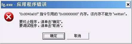 自由门启动时总是说,有内存不能written,让我关闭还是调试,多试几次就好了,不知什么原因。是不是我的电脑有病毒。 答:同修问的问题应该和下图的问题是一样的:  有技术人士解析为系统内存错误,摘要如下,供参考: 1. 应用程序没有检查内存,分配失败 当分配失败时系统函数会返回一个0值,这时返回值“0”已不表示新启用的指针(内存地址),而是系统响应应用程序发出的一个通知,告知出现了错误。应用程序在每一次申请内存后都应该检查返回值是否为0,如是,意味着出现了故障,应采取措施挽救,这就增强了程序的“健壮性”。 若应用程序没有检查到这个错误,它就会按照“思维惯性”认为这个值是给它分配的可用指针,从而继续在之后的运行中使用这块内存。真正的0地址内存区保存的是电脑中最重要的“中断描述符表”,绝不允许应用程序使用。在没有保护机制的操作系统下(如DOS),写数据到这个地址会导致立即死机,而在健壮的系统中,如Windows等,这个操作会马上被系统的保护机制捕获,其结果就是由操作系统强行关闭出错的应用程序,以防止其错误扩大。这时候,就会出现上述的“写内存”错误,并指出被引用的内存地址为“0x00000000”。 内存分配失败故障的原因很多,内存不够,系统函数的版本不匹配等都有能有影响。因此,这种分配失败多见于操作系统使用很长时间后,安装了多种应用程序(包括无意中“安装”的病毒程序),更改了大量的系统参数和系统文件之后。 2. 应用程序由于自身BUG引用了不正常的内存指针 像这样的情况属于程序自身的BUG,你往往可在特定的操作顺序下重现错误。无效指针不一定总是0,因此错误提示中的内存地址也不一定为“0x00000000”,而是其它随机数字。 如你的系统经常出现上述错误提示,以下措施将会对你有所帮助: (1)查看系统中是否有木马或病毒。这类程序为了控制系统往往不负责地修改系统,从而导致操作系统异常。 (2)更新操作系统,让操作系统的安装程序重新拷贝正确版本的系统文件、修正系统参数。有时候操作系统本身也会有BUG,要注意安装官方发行的升级程序。 (3)试用新版本的应用程序。 我传播破网软件的经验