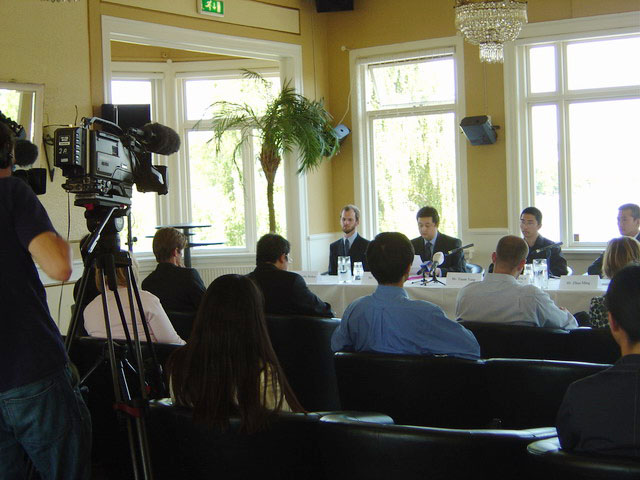 | 【明慧网2005年9月1日】中共前公安部长,现任最高检察院检察长贾春旺,2005年8月28日,参加在丹麦首都哥本哈根举办的国际检察长协会年会时,遭到法轮功学员以酷刑罪起诉。 8月29日,丹麦法轮功学会召开新闻发布会,各大主流媒体到场采访。 丹麦法轮功学会召开新闻发布会此次刑事诉讼案的原告为丹麦法轮大法协会、法轮功学员刘晓天和杨天乐。 丹麦法轮大法协会发言人马可-徐在会上宣读了“新闻公告”:“贾春旺任职的公安部及610办公室摧残了无以计数的生命,毁坏了无数的家庭,他是这些部门的主要负责人,诸多事实已构成了他的罪行。丹麦法轮大法学会强烈呼吁丹麦当局在贾春旺入境丹麦时将其逮捕,因为他们理应遵照丹麦法律行事,并保证将贾春旺送到公正的法律面前進行审判。” 原告之一,19岁的刘晓天,其父母因为修炼法轮功,在贾春旺担任公安部长期间被无理拘捕,并在不到5个月的时间里双双被迫害致死。刘晓天在发布会上介绍了在他不到16岁时,一夜之间失去父母和家庭,为了逃避警察的追寻,流离失所,历时18个月的逃亡经历,震撼了在场记者。 另一名原告杨天乐,则亲身经历了母亲因为向亲友介绍法轮功真象,被中共非法判刑三年,由此带给她及整个家庭的巨大痛苦。 遭受中共酷刑迫害的见证人赵明来自爱尔兰的赵明,是亲身遭受中共酷刑迫害的见证人。他向到会记者介绍了自己由于为法轮功请愿,而在中国被非法关押22个月,饱受酷刑折磨的痛苦经历,并详细描述了多种酷刑方法。 会后,各大媒体对原告進行了个别采访。