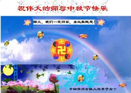 广州全体大法弟子祝师父中秋快乐。我们向师父保证,做好三件事,不辜负师尊慈悲救度。 大陆被非法关押的全体大法弟子向师父问候中秋节快乐!
