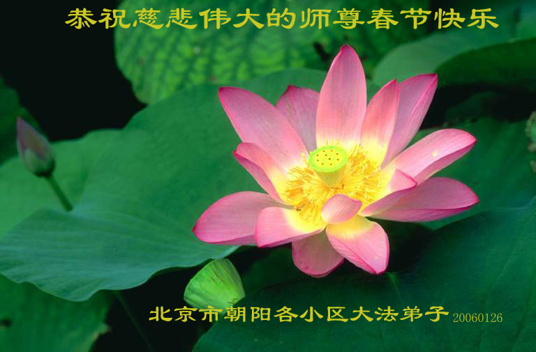 我们有千言万语要跟师尊说, 我们一定要做三件事, 决不辜负师尊慈悲苦度。 兰西大法弟子 2006年1月24日 北京国家机关大法弟子敬祝师尊新春快乐